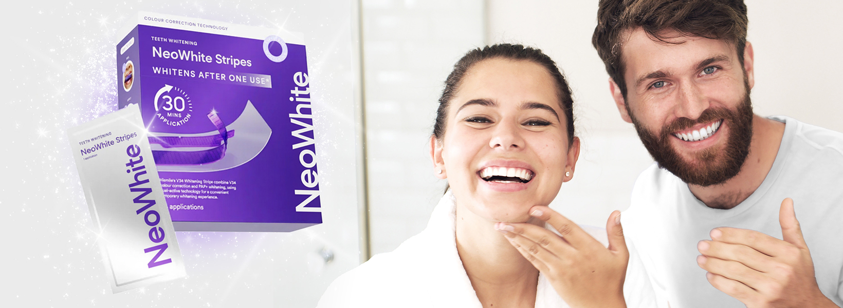 …to odbierz należący Ci się zestaw pasków wybielających NeoWhite Stripes, które rozjaśniają zęby od 7 do 8 odcieni już po pierwszym użyciu, a w ciągu 14 dni przywracają im piękny, perłowobiały odcień i blask – bez wizyty u stomatologa. Dzięki temu odzyskasz także pewność siebie i dobre samopoczucie.